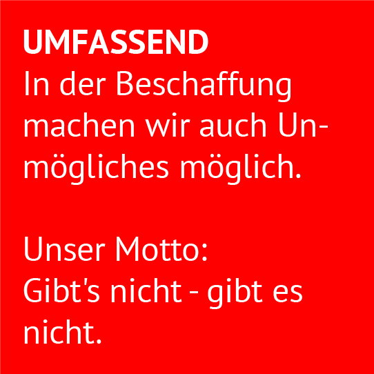 Unsere Präzision und Akribie haben schon oft gezeigt, dass manchmal ein klitzekleiner Umweg zu riesengrossen Verbesserungen einer Lösung führen kann. Bei der Beschaffung der dafür erforderlichen Hilfsmittel und -materialien profitieren Sie von unserem Know-how und unserem Beziehungsnetz.
